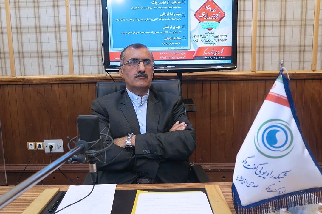 گفت و گوی اقتصادی با موضوع اقتصاد كشاورزی، نسخه گذر از اقتصاد نفتی "نظام حمایتی تسهیلاتی و جذب سرمایه در توسعه صنعت كشاورزی" با حضور محمودزاده(تهیه كننده) خانم حسنی دخت(كارشناس مجری) دكتر نیازعلی ابراهیمی پاك(عضو هیئت مدیره صندوق بیمه كشاورزی وزارت جهاد كشاورزی) دكتر سید رضا نورانی(رئیس اتحادیه ملی محصولات كشاورزی ایران، موسس و رئیس انجمن ارگانیك ایران) مهندس مهدی قریشی(عضو مجمع ملی كشاورزان خبره و رئیس هیئت مدیره خبرگان استان مركزی) محمد افضلی(خبرنگار خبرگزاری ایرنا)