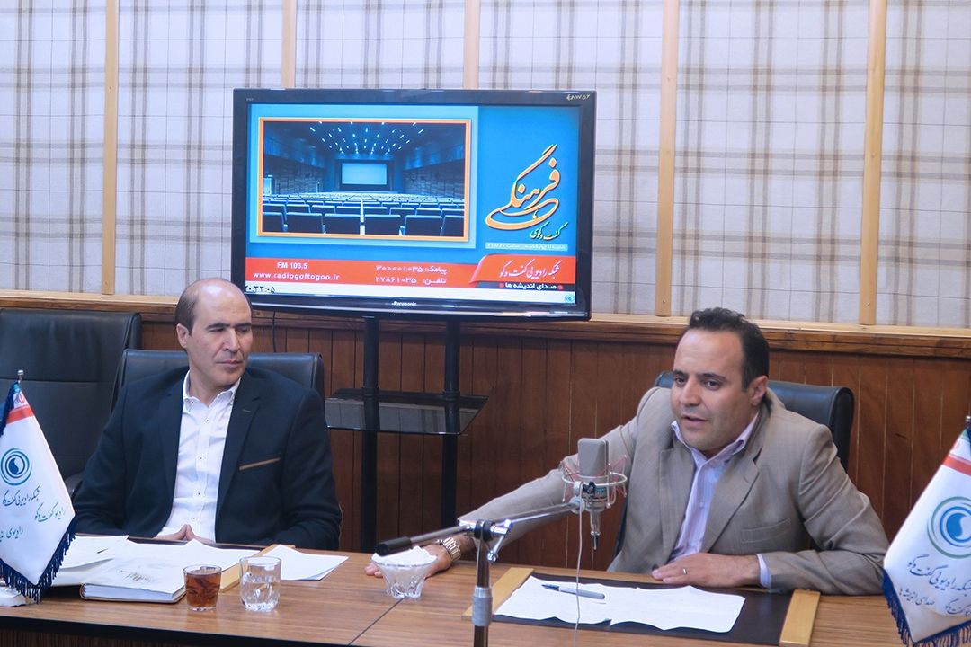 گفت و گوی فرهنگی با موضوع پیاده راه سازی و منظر شهری با حضور خانم جوزدانی(تهیه كننده) خرمی(كارشناس مجری) دكتر افشین قربانی پارام(مدرس دانشگاه، كارشناس حوزه شهرسازی و معماری و مولف كتب حوزه معماری) مهندس مجتبی هاشمی(كارشناس حوزه شهری و معماری) دكتر محسن صیدالی(دكترای تخصصی جغرافیا و برنامه ریزی از دانشگاه شهید بهشتی تهران، مدرس دانشگاه در حوزه های شهرسازی و مدیریت شهری، مدیر واحد آموزش، پژوهش و توسعه در سازمان همیاری شهرداری های استان تهران)