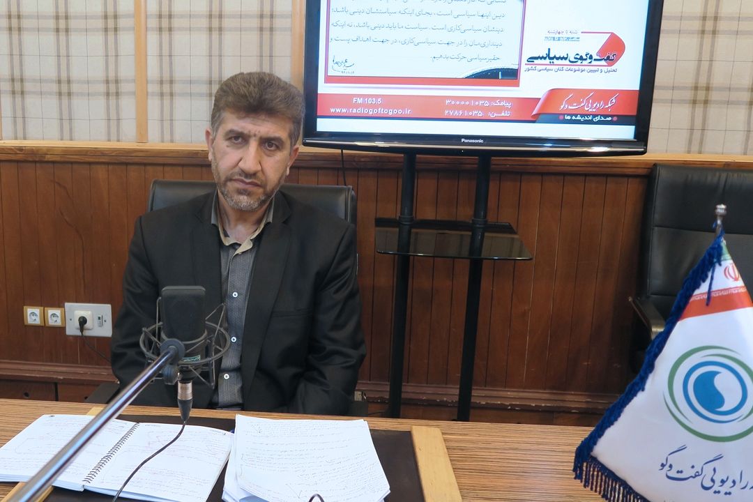 گفت و گوی سیاسی با موضوع واكاوی راهبرد نفوذ جریانی آمریكا در ایران با نگاهی به بسترهای احتمالی و ظرفیت های بومی با حضور ماهر(تهیه كننده)، عابدی(كارشناس مجری)، طاهری(گوینده)، دكتر طیبی(عضو هیئت علمی دانشگاه امام حسین"ع")، دكتر رضا مستمع(استاد دانشگاه) و ارتباط تلفنی با دكتر سعید آجرلو(كارشناس مسائل بین الملل و سیاسی و دبیر هفته نامه مثلث)