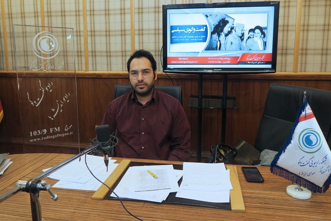 گفت و گوی سیاسی با موضوع بررسی و تحلیل اسلام آمریكایی و آفت های پیش روی انقلاب اسلامی از منظر امام خمینی(ره) با حضور ماهر(تهیه كننده) عسگری(كارشناس مجری) طاهری(گوینده آیتم) دكتر اشكان صفری(كارشناس مسائل سیاسی و استاد دانشگاه) دكتر رضا مستمع(كارشناس مسائل سیاسی و استاد دانشگاه) ارتباط تلفنی با حجت الاسلام سید مهدی موسوی(مدرس حوزه و دانشگاه)