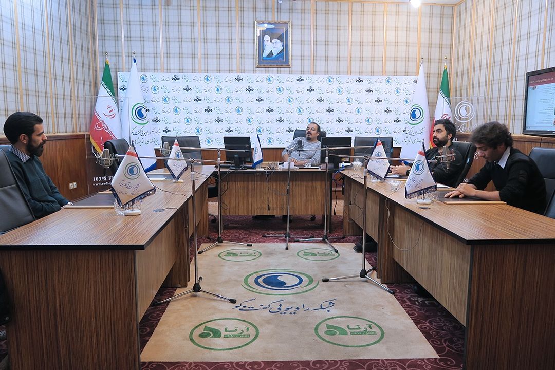 گفت و گوی فرهنگی با موضوع كتاب، رسانه و فضای مجازی با حضور خانم جوزدانی(تهیه كننده) خرمی(كارشناس مجری) دارابیان(نویسنده، پژوهشگر، منتقد و شاعر) صادق وفایی(خبرنگار خبرگزاری مهر و برگزیده جشنواره كتاب، رسانه و فضای مجازی) محمد آسیابانی(خبرنگار خبرگزاری مهر، نویسنده، منتقد و پژوهشگر)